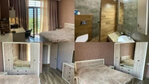 ფართობი: დიდი საცხოვრებელი სივრცე 10 ოთახით, რაც მოიცავს ნათელ მისაღებს, იზოლირებულ სამზარეულოსა და მრავალრიცხოვან საძინებლებს (Master Bedrooms).